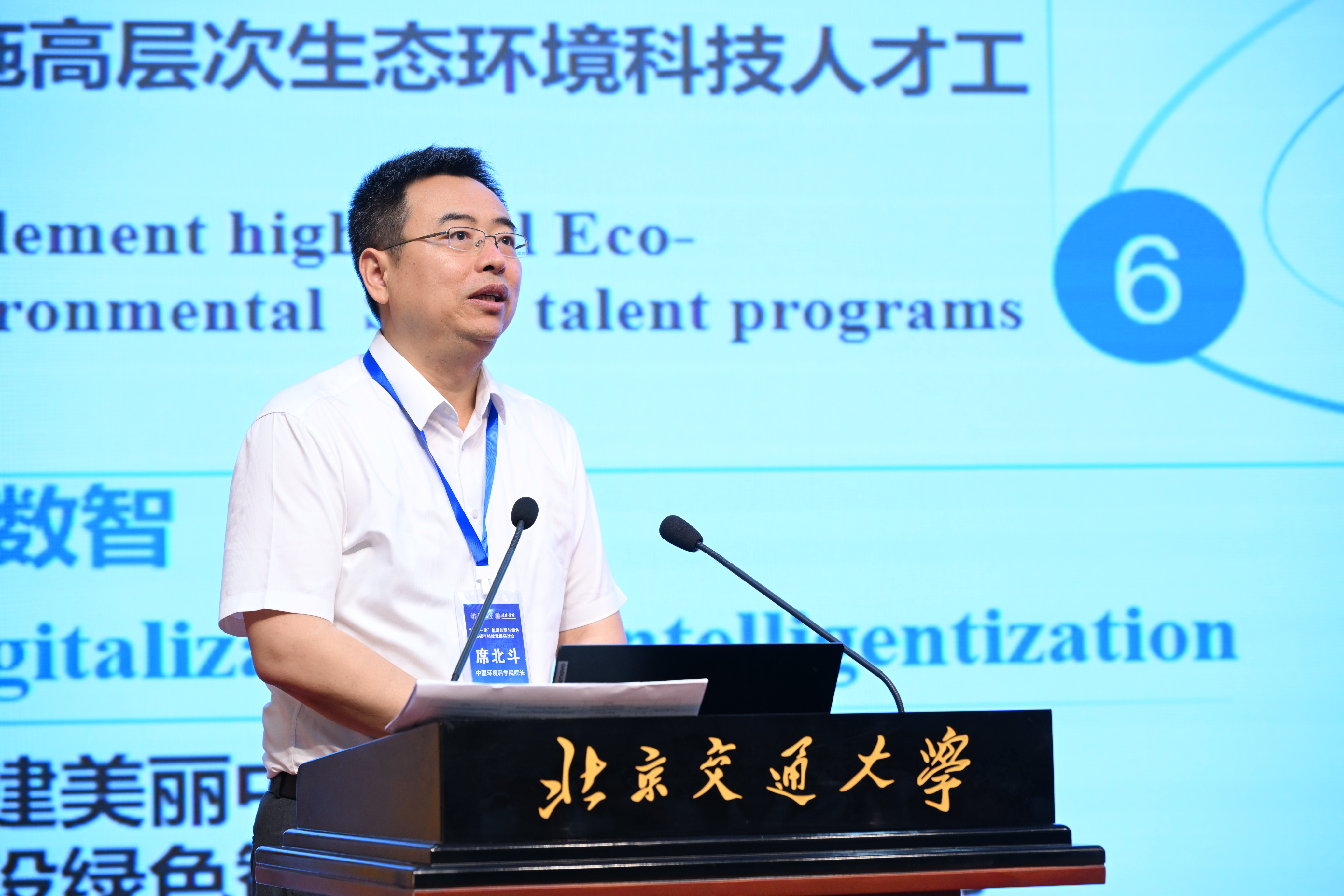 席北斗作“环境科技创新赋能高质量发展”主题报告,从科技创新的角度,详细阐述了环境科技在推动绿色低碳可持续发展中的重要作用,并对环境学科的发展提出指导意见。