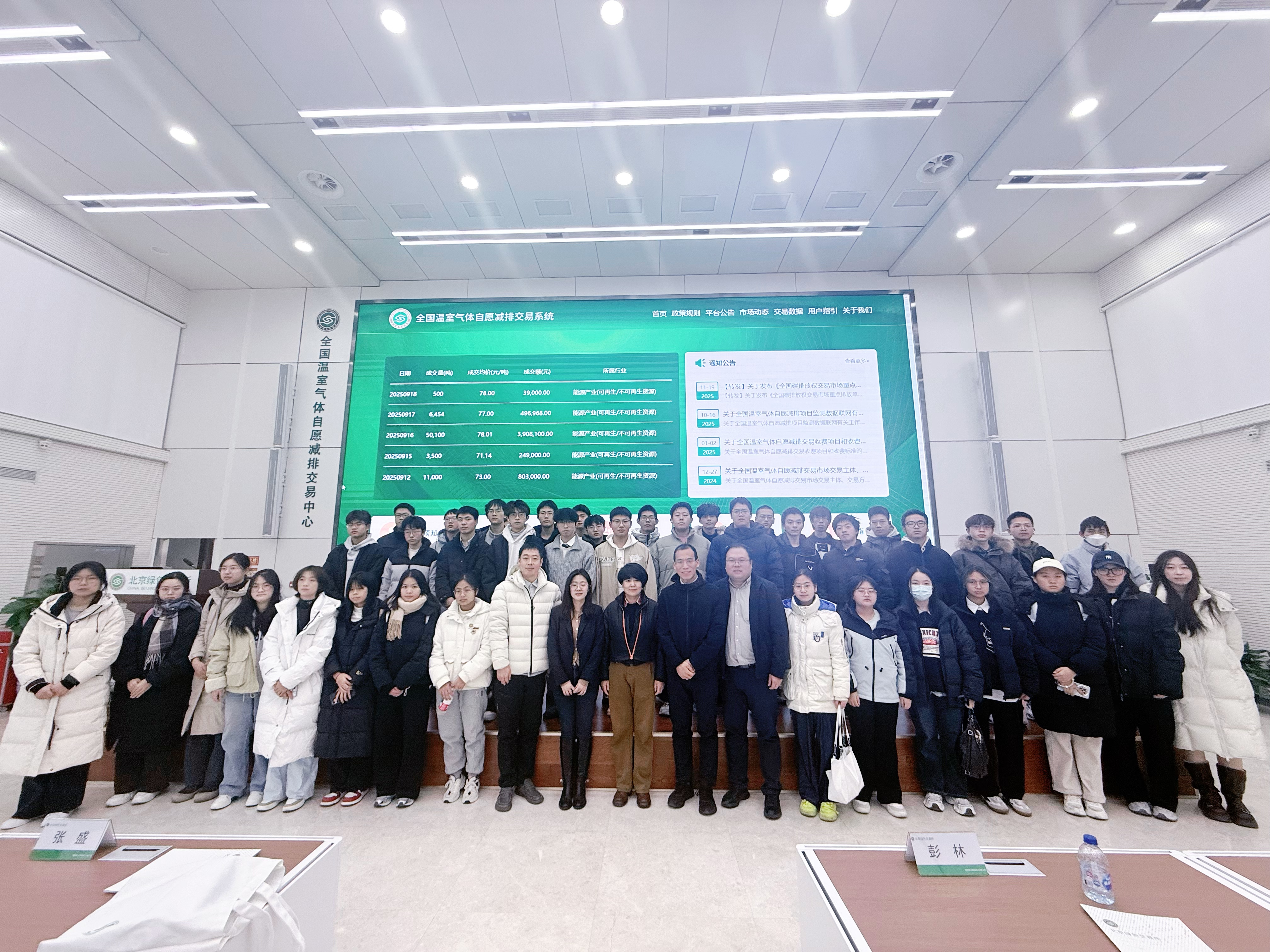为持续深化校企协同育人机制,帮助师生深刻理解国家“碳中和”发展战略,12月3日下午,自慰喷水 院长彭林教授带领40余名大一学子赴北京绿色交易所开展专题交流学习活动。